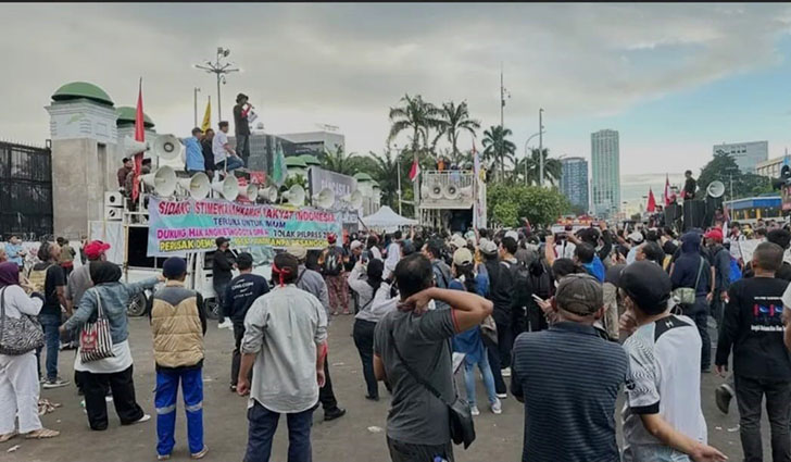 Massa aksi demo tolak hasil pemilu 2024 pun riuh menyambut rencana tersebut. Selain itu, mereka juga menyatakan bahwa Pemilu 2024 tidak sah.