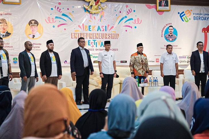 Menteri Pariwisata dan Ekonomi Kreatif (Menparekraf) Sandiaga Uno mendorong serta mengajak generasi muda di kota Bekasi baik milenial maupun Gen-Z untuk turut serta dan berperan aktif memperkuat UMKM yang ada di Bekasi dengan tidak ragu untuk menjadi seorang entrepreneur.