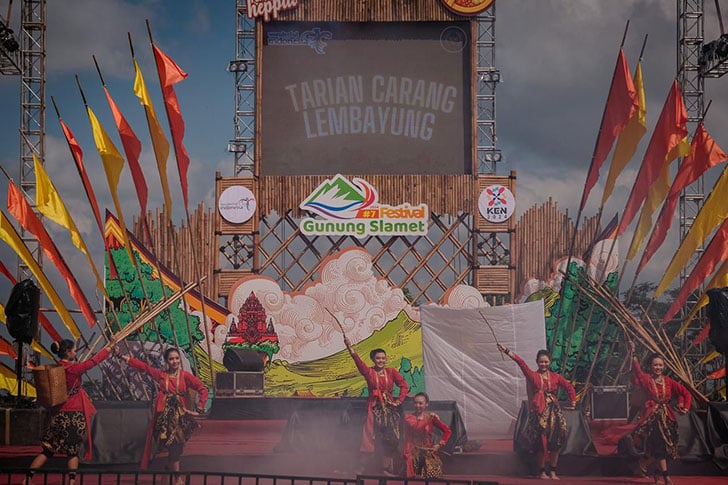 Festival Gunung Slamet dibuka dengan Tarian Carang Lembayung yang dibawakan oleh siswa SMPN 1 Purbalingga.