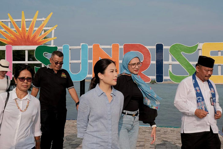 Wakil Menteri Pariwisata dan Ekonomi Kreatif/Wakil Kepala Badan Pariwisata dan Ekonomi Kreatif (Wamenparekraf/Wakabaparekraf) Angela Tanoesoedibjo melakukan kunjungan kerja ke Pantai Sunrise, Pulau Pramuka, Kepulauan Seribu,untuk melepaskan bayi bayi-bayi penyu sisik atau tukik sisik kembali ke habitatnya di laut.